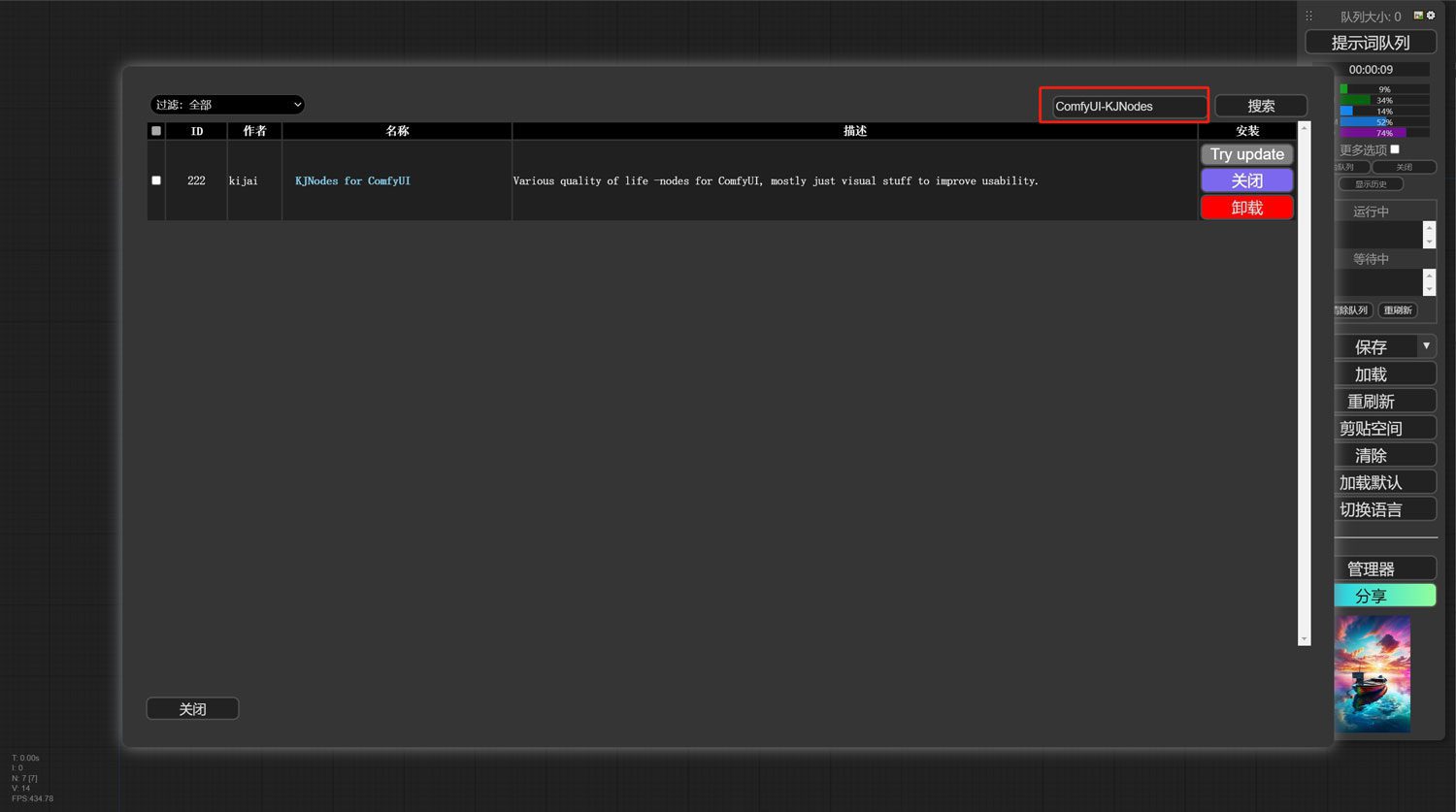 方法一:通过comfyui管理器安装点击“管理器”,点击“安装节点”,搜索“ComfyUI-KJNodes”,点击“安装”!